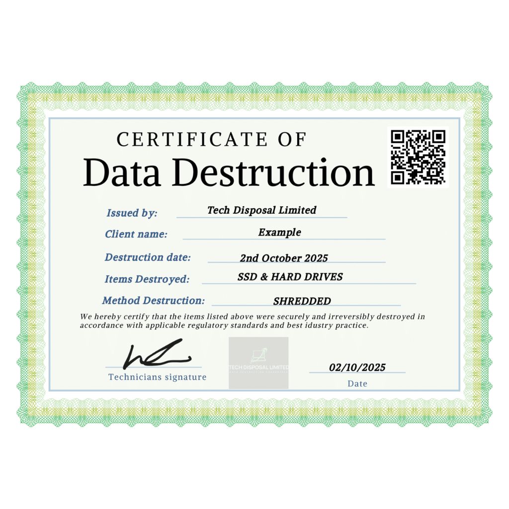Our certified data destruction services ensure complete removal of sensitive information, protecting your business from data breaches and compliance risks.